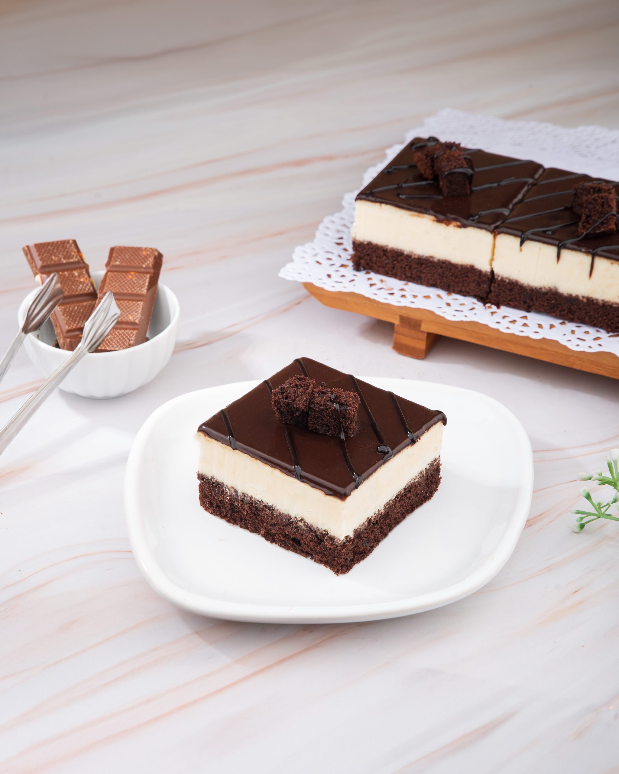 Brownie based, cheesecake cream and chocolate sauce … | Özellikler: | – Shelf life: +4° 72 Hours; -18° 1 Year | – Portion weight: 120 gr | – Slices per cake: 12 | – Boxes: 10