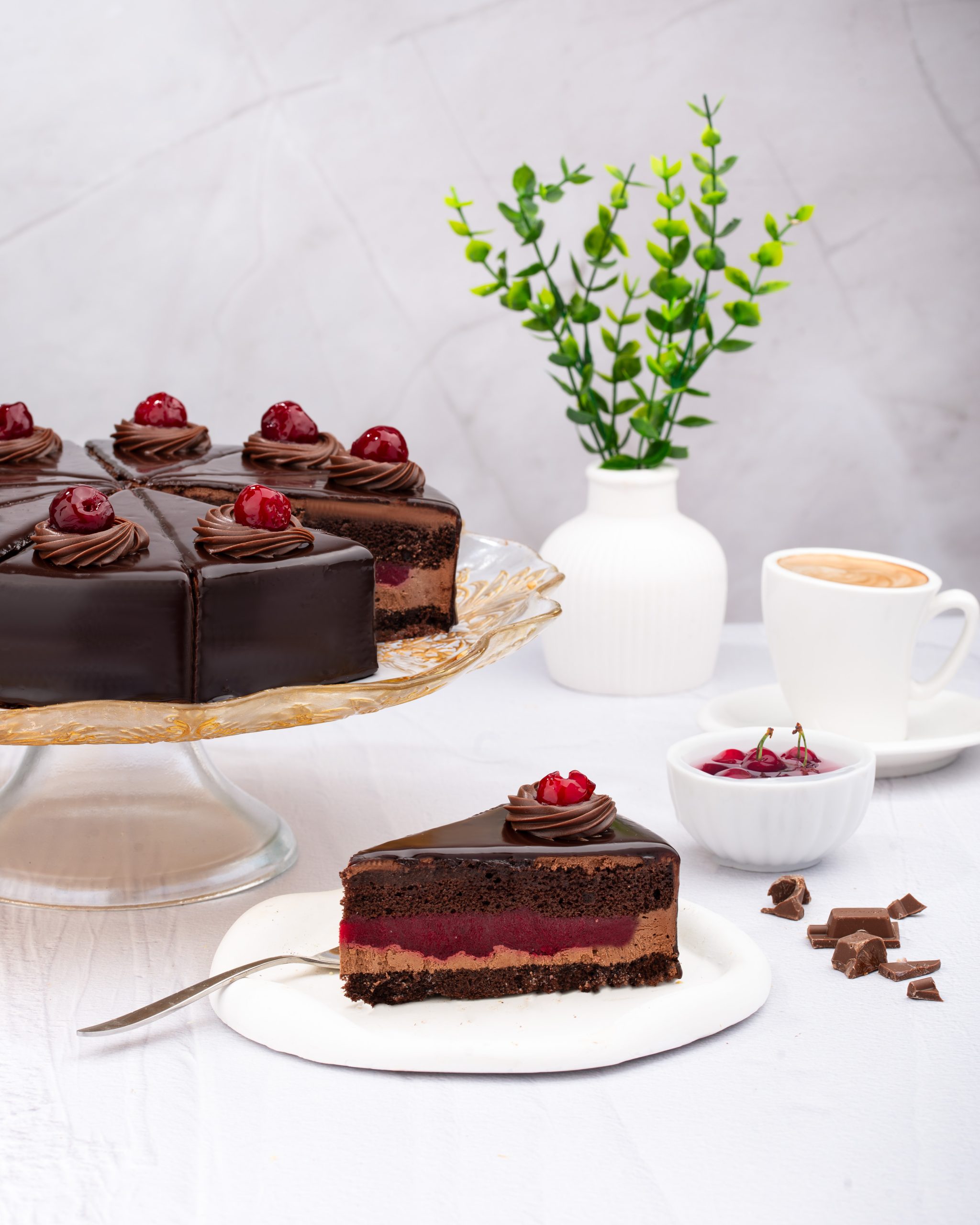 Combination of sour cherry and chocolate … | Özellikler: | – Shelf life: +4° 72 Hours; -18° 1 Year | – Portion weight: 125 gr | – Slices per cake: 12 | – Boxes: 10