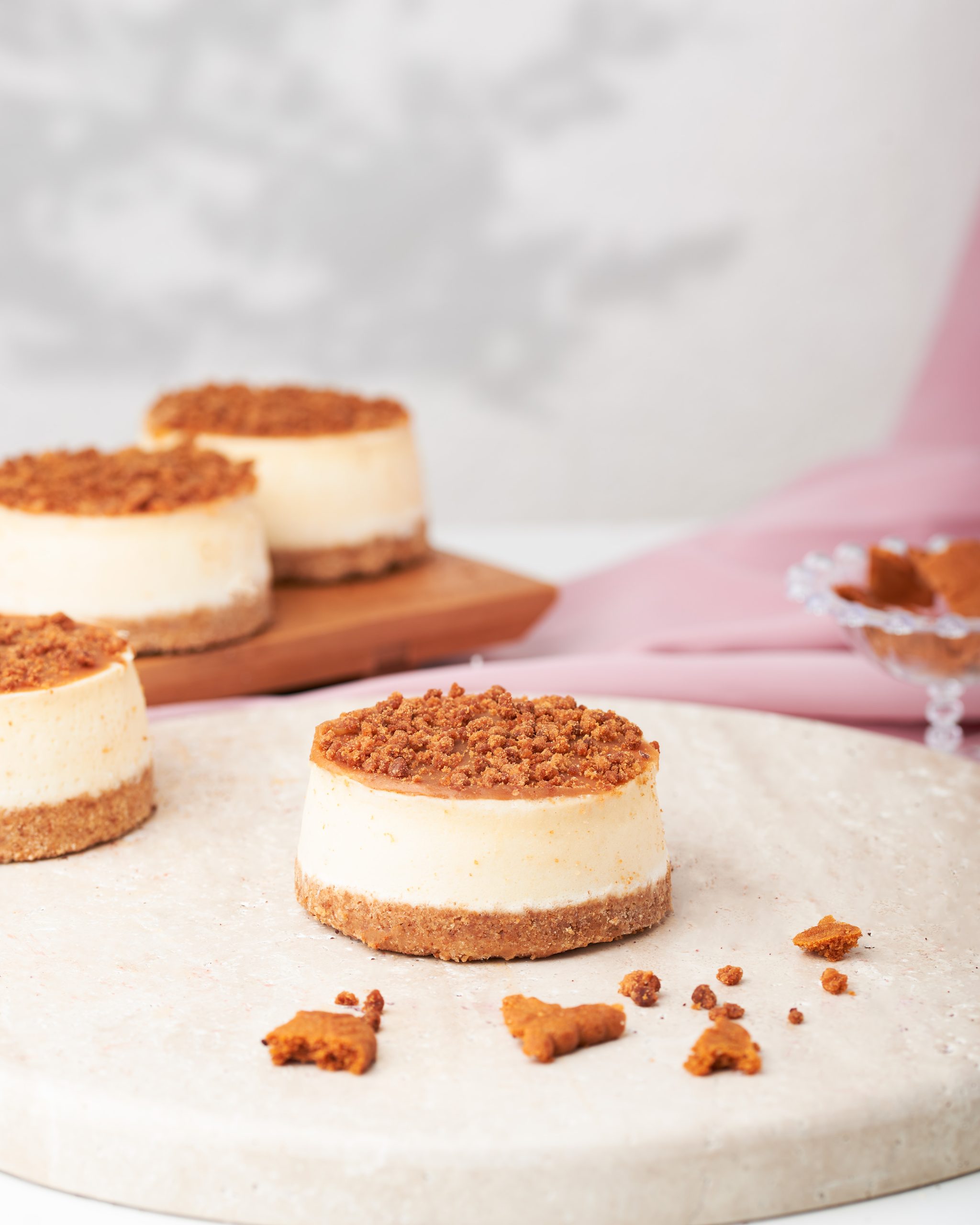 Biscuit based, cheesecake cream and lotus biscuits cream and pieces | Özellikler: | – Shelf life: +4° 72 Hours; -18° 1 Year | – Portion weight: 160 gr | – Slices per cake: 9 | – Boxes: 10