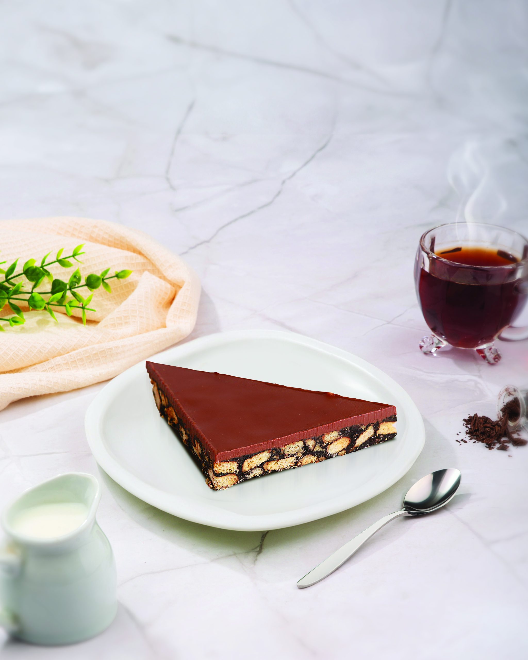 A wonderful combination of chocolate and biscuit | Özellikler: | – Shelf life: +4° 72 Hours; -18° 1 Year | – Portion weight: 90 gr | – Slices per cake: 8 | – Boxes: 14